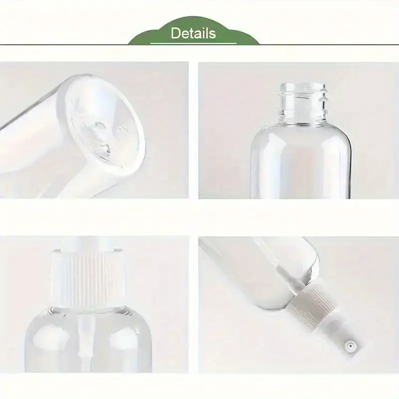 Constructed from clear PET (Polyethylene Terephthalate) plastic, these bottles are sturdy yet lightweight. PET is known for its durability, clarity, and resistance to breakage, making it ideal for liquid storage. Unlike glass containers, our 100ml refillable spray bottles won’t shatter if dropped.